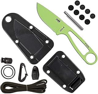 ESEE Unisex – Erwachsene, Outdoormesser, Izula Venom Green with Kit, Klinge: 6.7 cm, Drop Point, schwarz, Messer Für Jagd, Abenteuer, Full Tang, Scheide, Grün, normal