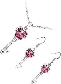 Damen Schmuckset Geschenk Sterling Silber Veredelte Schmuckset, bestehend aus Anhänger-Halskette und Ohrringen, Liebesschlüssel mit farbig Herz und Set aus Steinen für Frauen