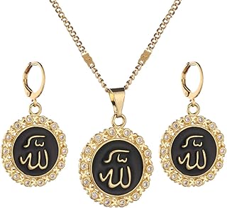 Dubai Goldfarbenes Schmuckset Halskette Anhänger Ohrringe für Frauen Ethnische Islamische Religion Muslim Allah Schmuckset