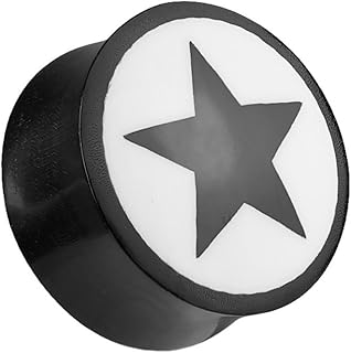 Ohr Plug Flesh Tunnel Piercing Ohrpiercing Organic Saddle Horn Schwarz Knochen Stern Inlay Weiß