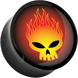 Ohr Plug Flesh Tunnel Piercing Ohrpiercing Saddle Kunststoff lodernder Schädel Totenkopf