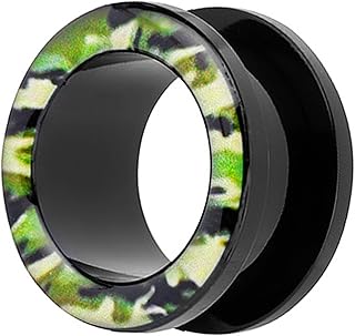 Flesh Tunnel Ohr Plug Piercing Ohrtunnel Ohrpiercing Schraub Kunststoff Camouflage Schwarz