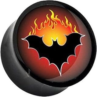 Ohr Plug Flesh Tunnel Piercing Ohrpiercing Saddle Kunststoff Fledermaus im Feuer Schwarz