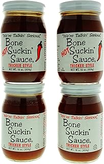 SPARPACK: 4er Set Bone Suckin' Sauce: 2x Hot/scharf Thicker Style (454g je Glas) + 2x Regular/nicht scharf Thicker Style (454g je Glas)