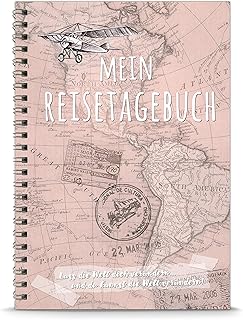 Mein Reisetagebuch - Lass die Welt dich verändern, rosa, DIY Reisebuch Tagebuch, zum selberschreiben, DIN A5, liniert, Ringbuch, Retro Vintage Collage Antike Look für eine Weltreise, alle Länder