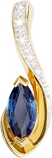 Saphir Anhänger (Ohne Kette) Gelbgold Weissgold 585 Gold (14 Karat) Mit Edelstein Diamanten 0,02ct 22mm x 6mm Goldanhänger Kettenanhänger Eunundi V0010859