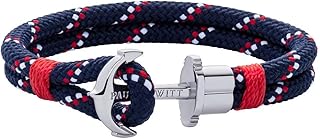 Anker Armband PHREP - Segeltau Armband in Marineblau Rot Weiß, Armband mit Anker Schmuck aus Edelstahl (Silber) in Größe XL