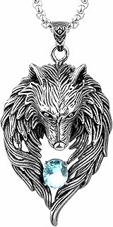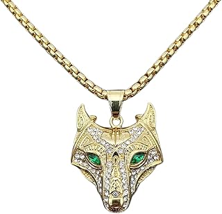 Edelstahl Wolfskopf Halskette für Männer, Nordic Viking Wolf Tier Halskette Iced Out Wolfskopf Anhänger Halskette für Jungen
