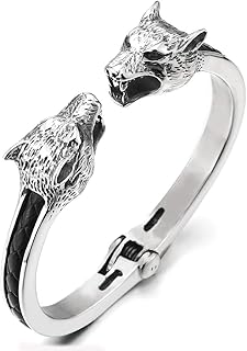 Retro-Stil Wolfskopf Armreif Herren Edelstahl Armband