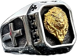 Ring aus 316L Edelstahl, vergoldet, Löwenkopf-Statue, antiker Stil, Biker, Herren, Modeschmuck, Ring, Punk, Totenkopf, Kreis, Premium-Ring für Herren (Nr. 7)