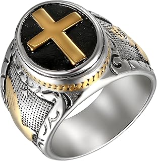 Herren-Ring Rosenkranz-Ring Herrenring, Edelstahl Ring Edelstahlring Bandring Schwarz Silber Gold Daumenring Herrenringe Siegel Kreuz Kruzifix Jesus Männer Herren-Accessoires
