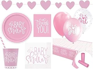 Kids Party World XL 68 Teile Baby Shower Deko Set Herzchen Rosa für 8 Personen