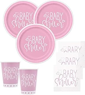 48 Teile Baby Shower Herzchen in Rosa Party Deko Set für 16 Personen