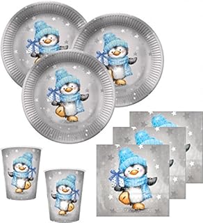 48 Teile Pinguin Junge in Hellblau und Silber Deko Set für 16 Personen