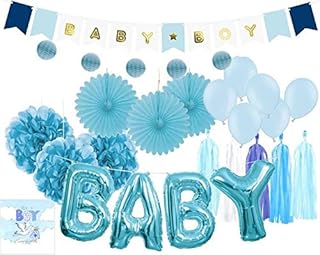 Comius Sharp Baby Shower Dekorationen, 56 pcs Babyparty Deko Junge Set Baby Shower Banner für Jungs Baby Shower Dekoration Girlande(Blue)