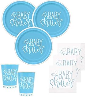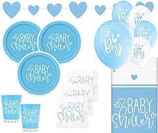 XL 39 Teile Baby Shower Herzchen in Hellblau Party Deko Set für 8 Personen