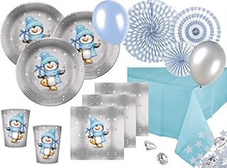 Kids Party World XL 79 Teile Pinguin Junge in Hellblau und Silber Deko Set für 16 Personen