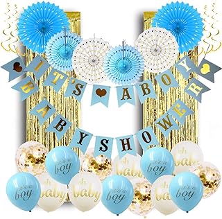 Dawana Baby Party Baby Shower Junge Boy Deko Set 32 Teile Dekoration Luftballons Gold Blau Weiß Wimpelkette Lametta