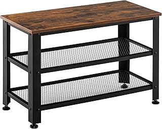 VASAGLE Schuhbank mit 2 Gitterablagen, Schuhregal mit Sitzfläche, 80 x 30 x 44.5 cm, Schuhablage für den Eingangsbereich, Industrie-Design, vintagebraun-schwarz LBS74X