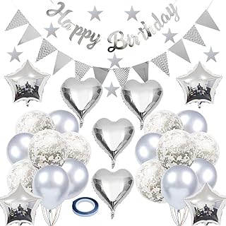 Zsroot Silberne Geburtstag Dekoration Set,Geburtstags Silberne deko,Happy Birthday Banner Balloon Wimpel Fünfzackiger Stern Silberne Band,Geburtstag Partydeko für Junge Mädchen Männer Frauen