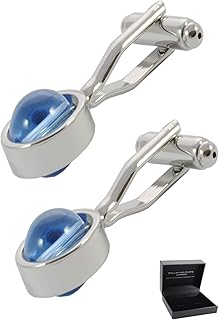 HOCHWERTIGE Manschettenknöpfe mit Geschenk Box - Murmeln - Rotierend - Stilvolle Messing - Silberne und Hellblaue Farben - Glas