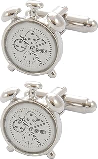 HOCHWERTIGE Manschettenknöpfe mit Geschenk Box - Wecker - Weißes Zifferblatt - Stilvolle Messing - Weiße und Silberne Farben - Zeit Uhr