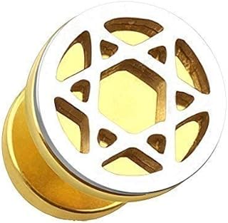 316L Edelstahl Flesh Tunnel Plug Inlay Piercing Pentagramm Fünfstern Drudenfuß Herren Damen