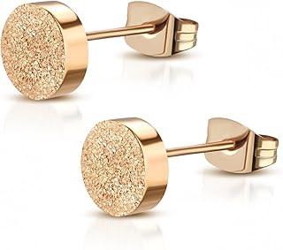 2er Set 316L Edelstahl Ohrstecker Stecker Studs 5mm Platte Round Circle Kreis Sandgestrahlt Glitzer Bling-Bling Silber Rose Gold schwarz Herren Damen