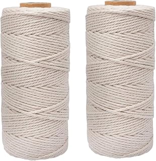 Yongbest Makramee Garn,2 Rollen Naturliches Baumwolle Garn 200 m 1 mm Baumwollgarnseil für Wandbehang Pflanzenbügel Backen DIY Basteln