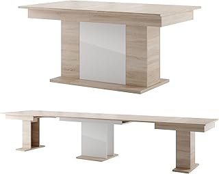 Furniture24 Tisch Star 06 Esstisch Säulentisch ausziehbar 160-410 cm (Sonoma Eiche/Weiß Hochglanz)