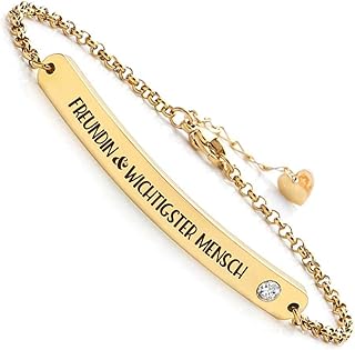 Damen Gravur-Armband mit wählbarem Familien- und Freunde-Spruch | Freundschaftsarmband - Gold - Freundin & wichtigster Mensch