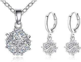 Silber Schmuckset für Damen, 925 Sterling Silber Herz Halskette Ohrringe Set, Schneeflocke Anhänger mit 45cm Silber Kette, Herz Ohrstecker mit Weiß Zirkonia, Geschenk zum Weihnachten