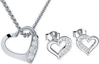 Silber Schmuckset für Damen, 925 Sterling Silber Halskette Ohrringe Set, Herz Anhänger mit 45cm Silber Kette & Ohrhänger mit Zirkonia, Geschenk für Frau Freundin zum Weihnachten Geburtstag