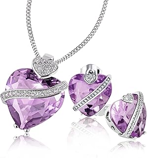 Damen-Herz-Schmuckset Halskette + Ohrringe 925 Sterlingsilber rhodiniert amethystfarbener Zirkonia