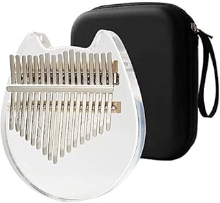 Kalimba mit EVA-Tasche, Daumenklavier mit 17 Tasten, Kristall-Kalimba-Acryl-Mbira-Fingerklavier, Musikinstrument, Erwachsene, Anfänger mit Stimmhammer und Lernanleitung (Katzenform)