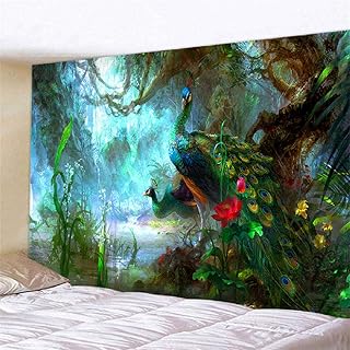 Pfau Wandbehang Wandteppich Wald Märchen Psychedelic Bohemian Hippie Wandteppiche Wandteppich Abstrakte Kunst Decke Schlafzimmer Dekor-200X150cm