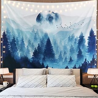 Aimsie Wandteppich, Meer Strand Wandteppich Polyester Wanddeko Mädchen Wandtuch Wald Blau 200X200Cm
