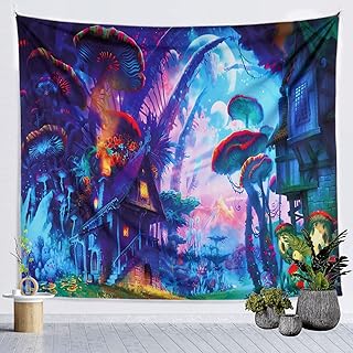 Wandteppich Psychedelic, Wanderlife Pilz Wandbehang Wandtuch Tapestry 150x130CM, Wandteppich Trippy Aesthetic,Wandteppich Wald für Schlafzimmer Wohnzimmer Wohnheim Wanddeko