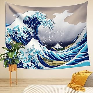 LIGICKY Wandteppich Wandtuch Hippie Tapisserie Ukiyoe Hokusai The Great Wave off Kanagawa Wandbehang Picknickdecke Staubtuch Tischdecke Wand Dekor Heimdekoration für Wohn und Schlafzimmer, 150 x 130cm