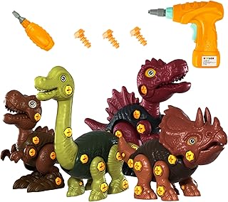 Dinosaurier Spielzeug,4 Stück Dinosaurier Spielzeug mit Elektrische Bohrmaschine Werkzeugen DIY Gebäude Spielzeug für Kinder Zerlegen Tiere Spielzeug,Denkspiel Geschenke Jungen und Mädchen Lebensräume